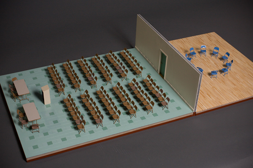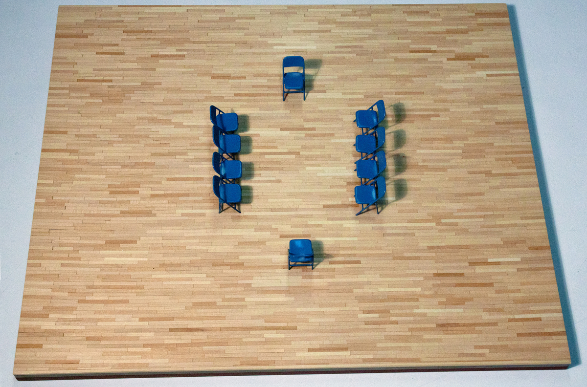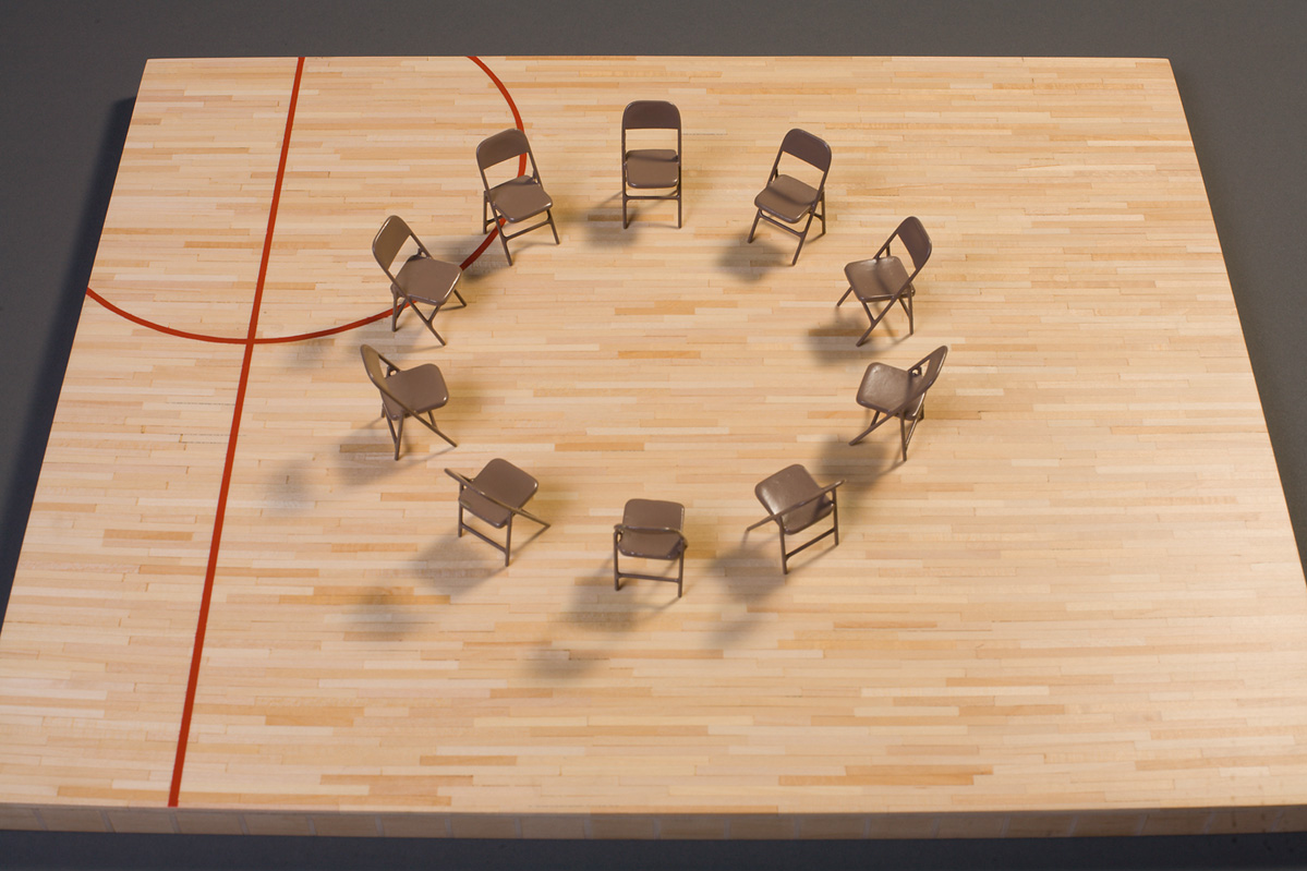 Seminar, brass, cast bronze, aluminum, laminated wood, 5 x 18 x 28 in. 2008