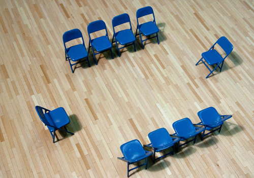 Lecture, brass, cast bronze, aluminum, 2 x 33 x 37 in. 2007