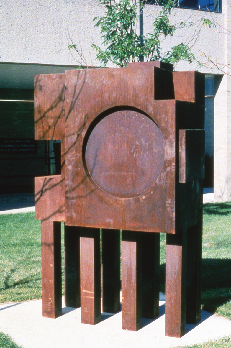 Tall City 1994, welded steel, 82 x 72 x 36 in., Installed at Plattsburgh Sculpture Park.