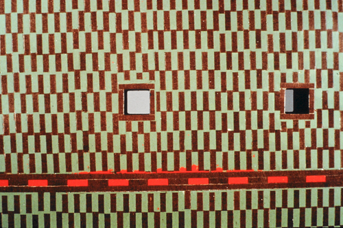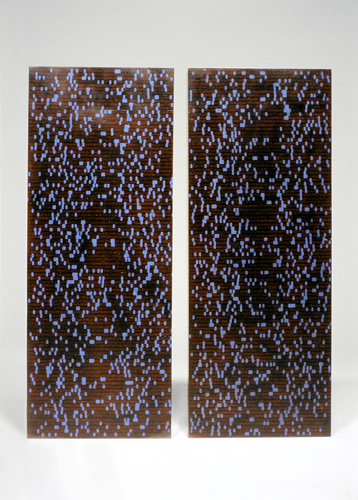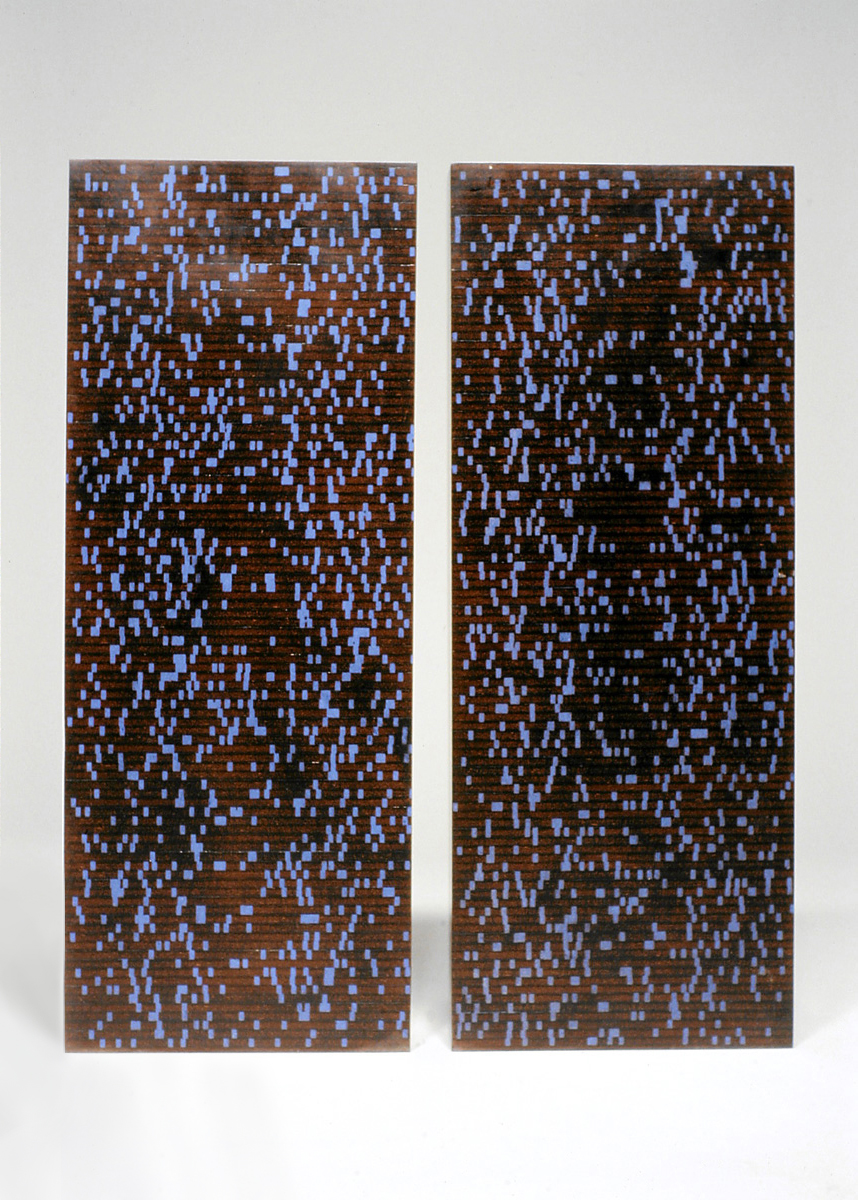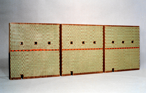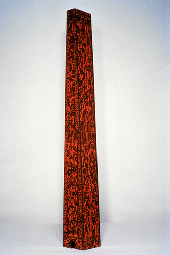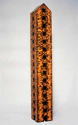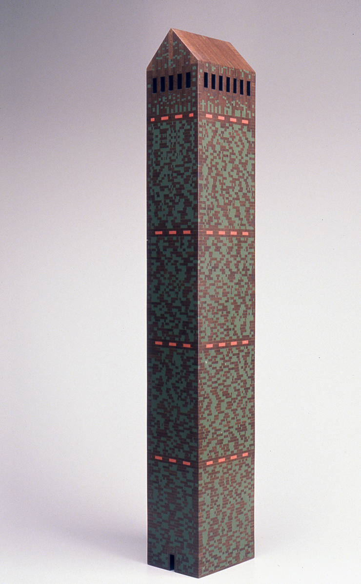 Tower No. 10 laminated pressboard on wood with colored inlays, 40 x 6.5 x 8 in., 1993