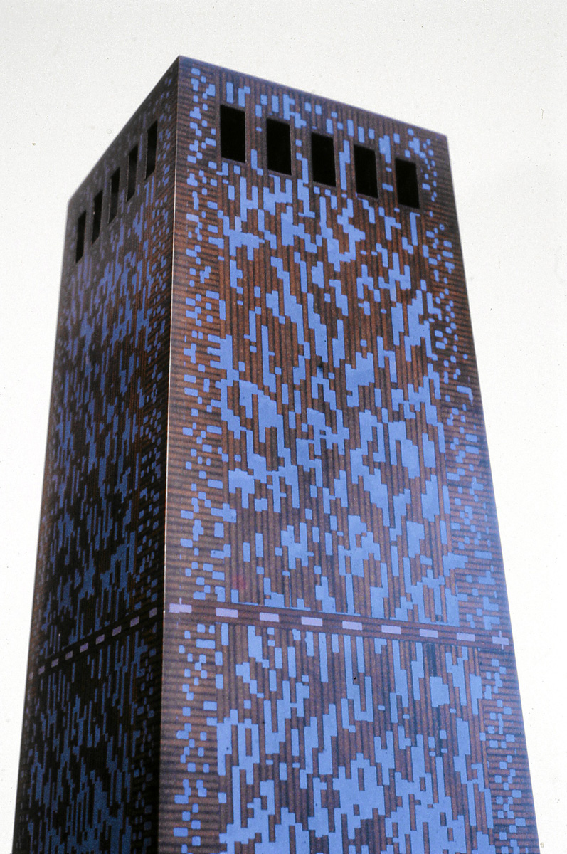 Untitled Tower laminated pressboard on wood with colored inlays, 1990